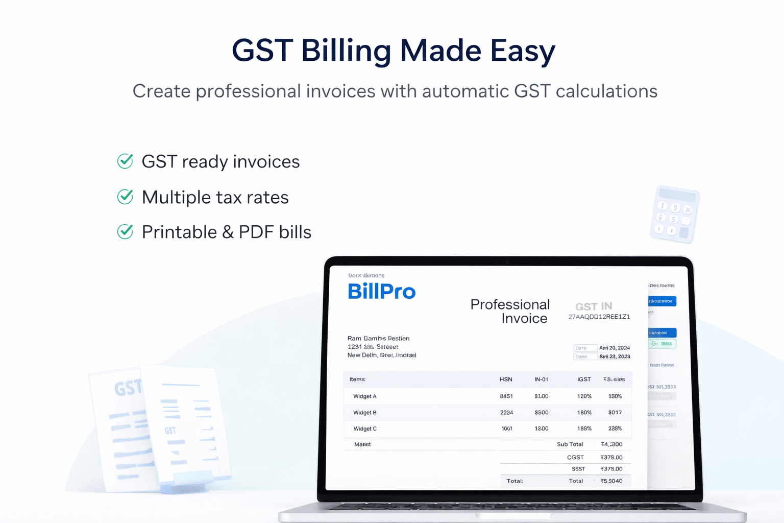 Create professional invoices with automatic GST calculations.